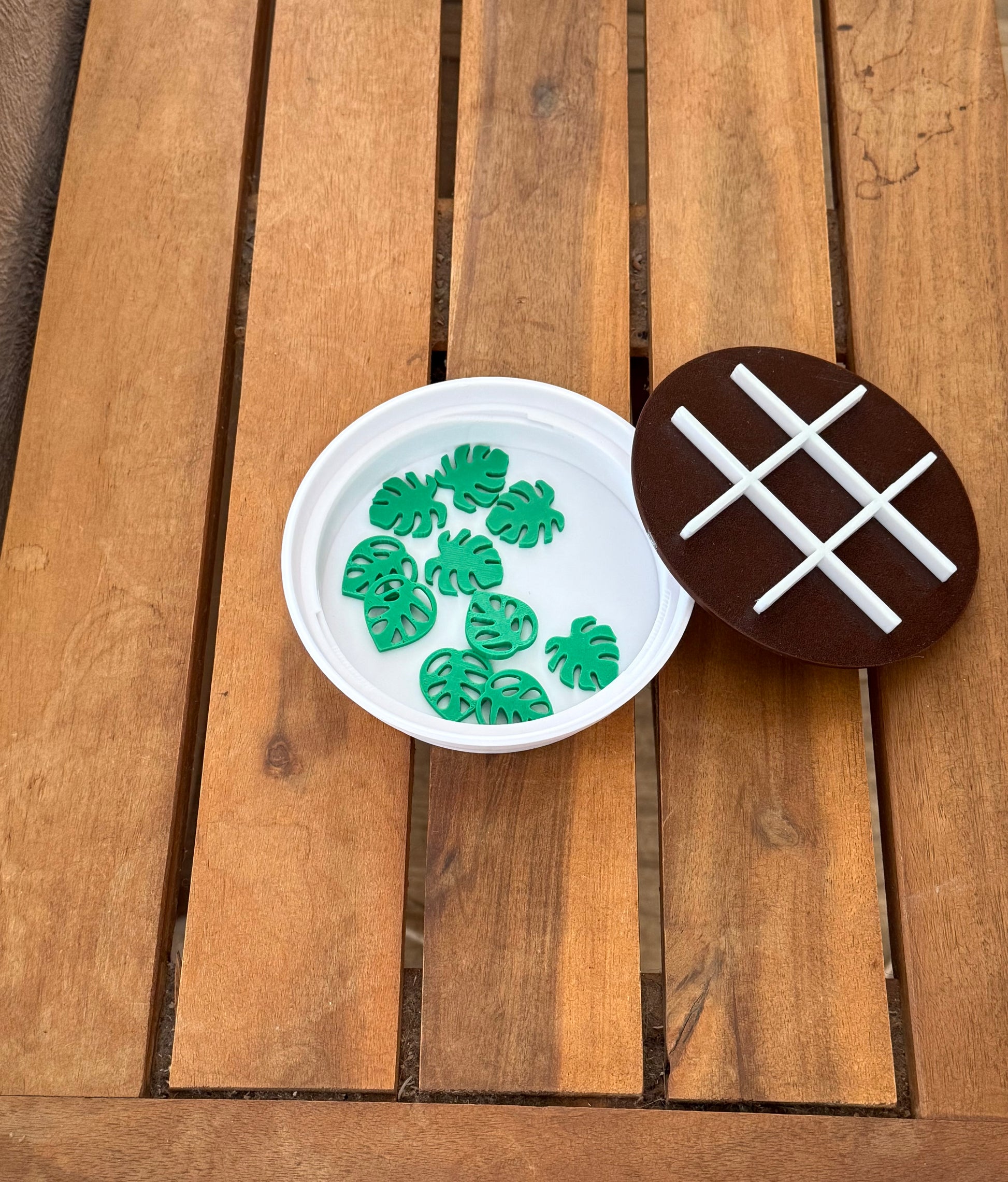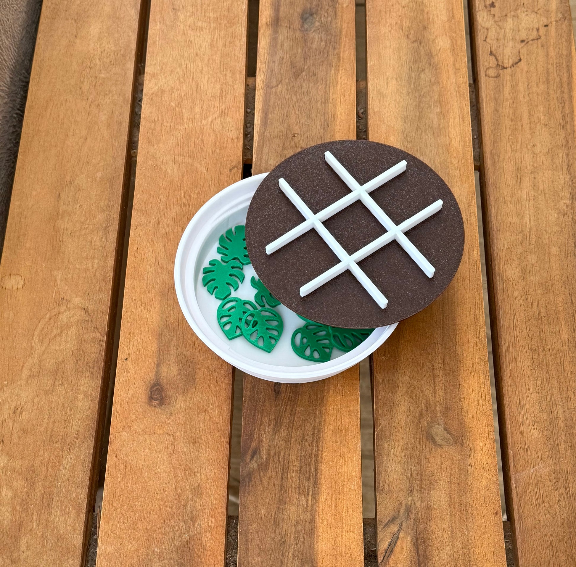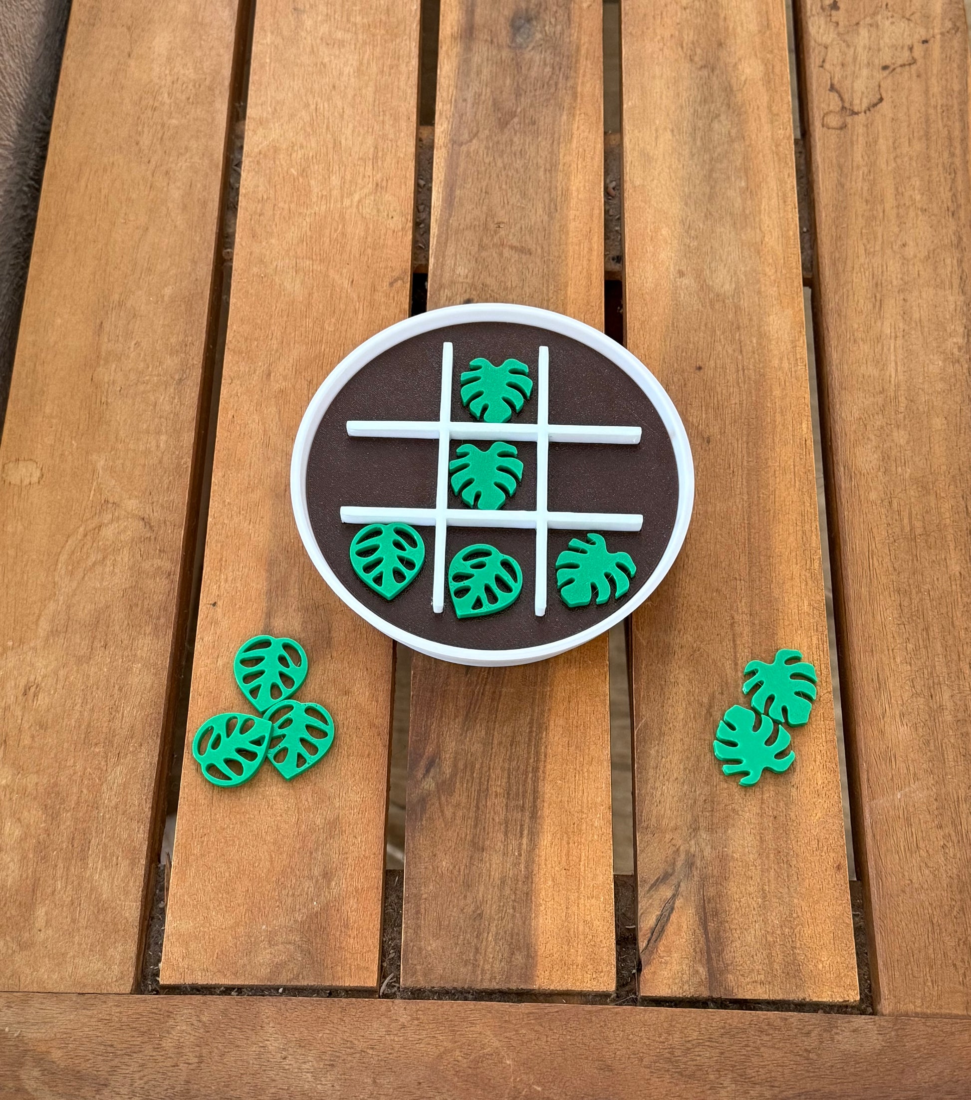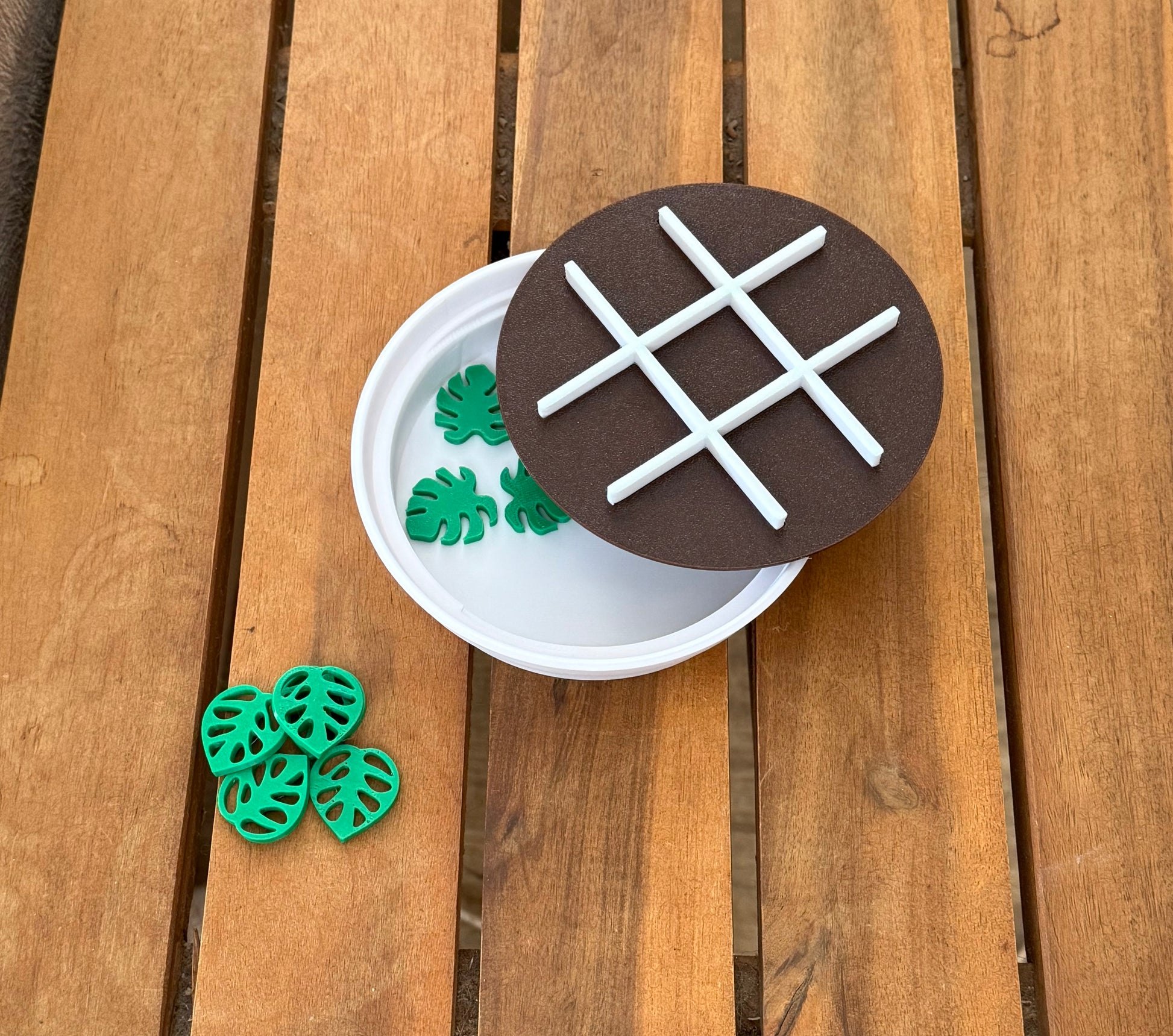 Traga mais natureza e criatividade para suas brincadeiras com o exclusivo jogo da velha de folhas! As peças estilizadas representam as famosas monstera adansonii e deliciosa, trazendo charme botânico para sua mesa. O jogo acompanha uma caixa acoplada para armazenar as peças, garantindo organização e praticidade.